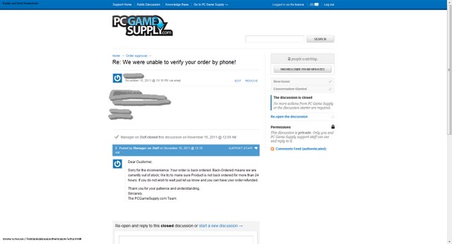 2時間後サポートのページにスタッフからの返信があり、「カードが品切れになったので